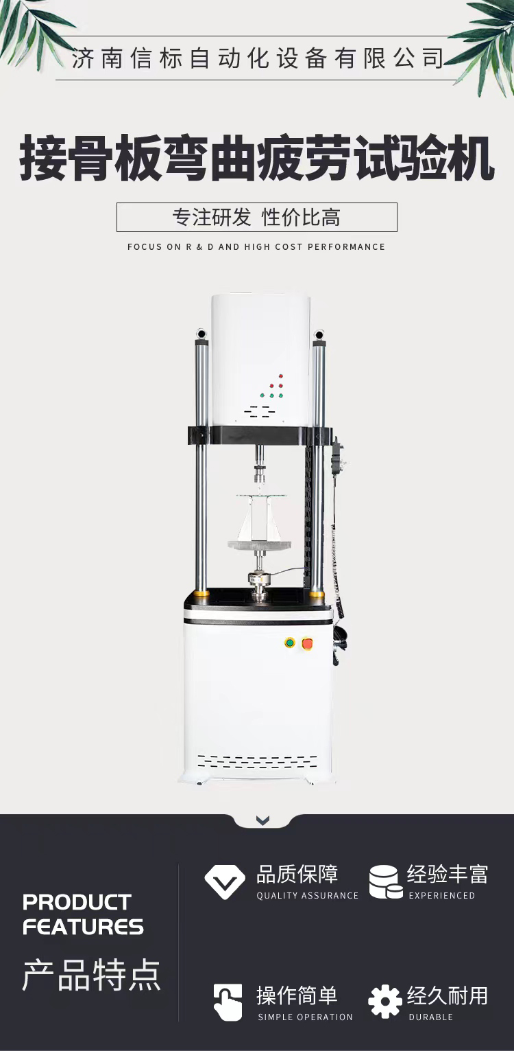 濟南信標自動化設(shè)備有限公司主要生產(chǎn):動靜態(tài)萬能疲勞試驗機,接骨板彎曲試驗機,縫合線拉伸疲勞試驗機,髖膝關(guān)節(jié)磨損試驗機,電子萬能試驗機、液壓萬能試驗機、巖石三軸、四軸,電液拉力試驗機,材料試驗機,高低溫蠕變,高低頻疲勞,拉伸、扭轉(zhuǎn)、杯突等二十多個系列兩千多個的品種。