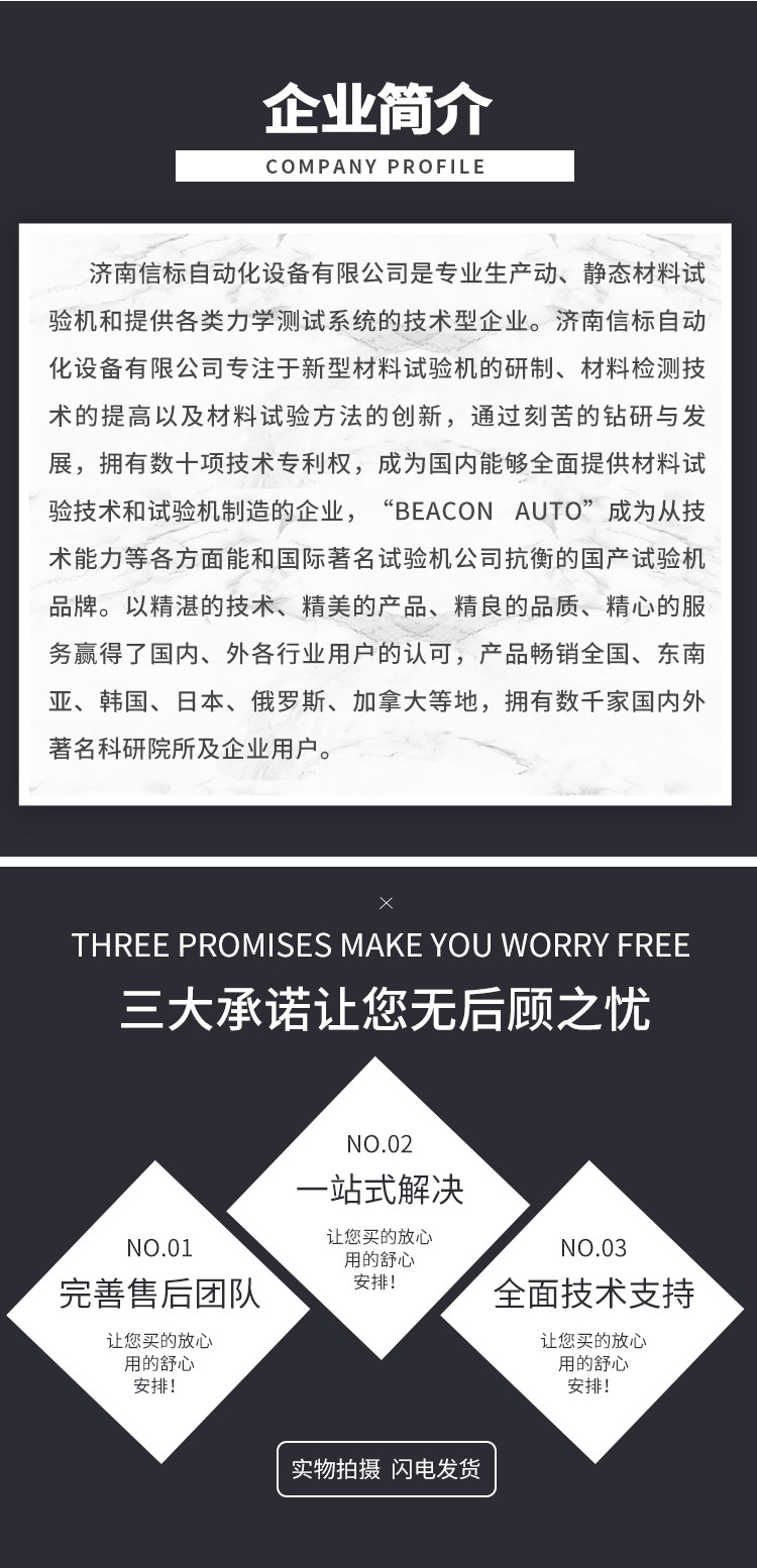 濟(jì)南信標(biāo)自動(dòng)化設(shè)備有限公司主要生產(chǎn):動(dòng)靜態(tài)萬能疲勞試驗(yàn)機(jī),接骨板彎曲試驗(yàn)機(jī),縫合線拉伸疲勞試驗(yàn)機(jī),髖膝關(guān)節(jié)磨損試驗(yàn)機(jī),電子萬能試驗(yàn)機(jī)、液壓萬能試驗(yàn)機(jī)、巖石三軸、四軸,電液拉力試驗(yàn)機(jī),材料試驗(yàn)機(jī),高低溫蠕變,高低頻疲勞,拉伸、扭轉(zhuǎn)、杯突等二十多個(gè)系列兩千多個(gè)的品種。