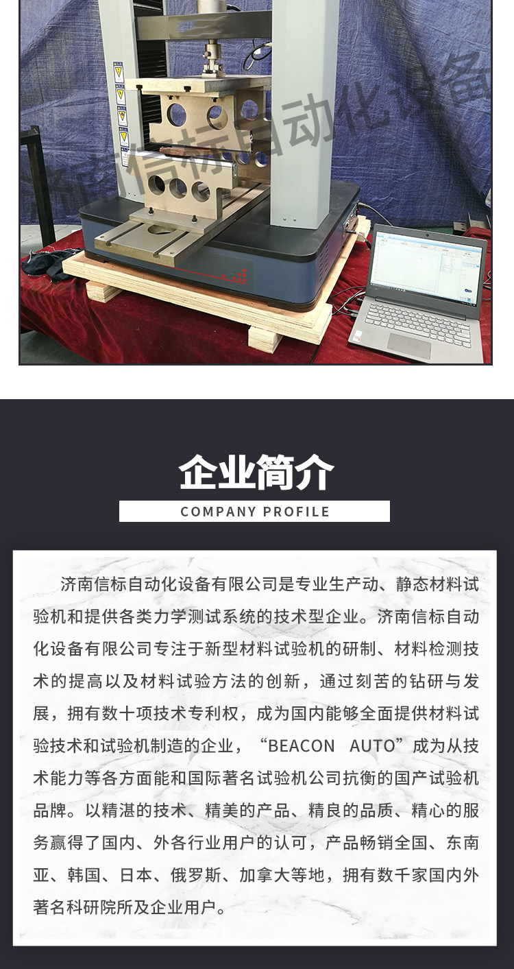 濟南信標自動化設備有限公司主要生產:動靜態(tài)萬能疲勞試驗機,接骨板彎曲試驗機,縫合線拉伸疲勞試驗機,髖膝關節(jié)磨損試驗機,電子萬能試驗機、液壓萬能試驗機、巖石三軸、四軸,電液拉力試驗機,材料試驗機,高低溫蠕變,高低頻疲勞,拉伸、扭轉、杯突等二十多個系列兩千多個的品種。