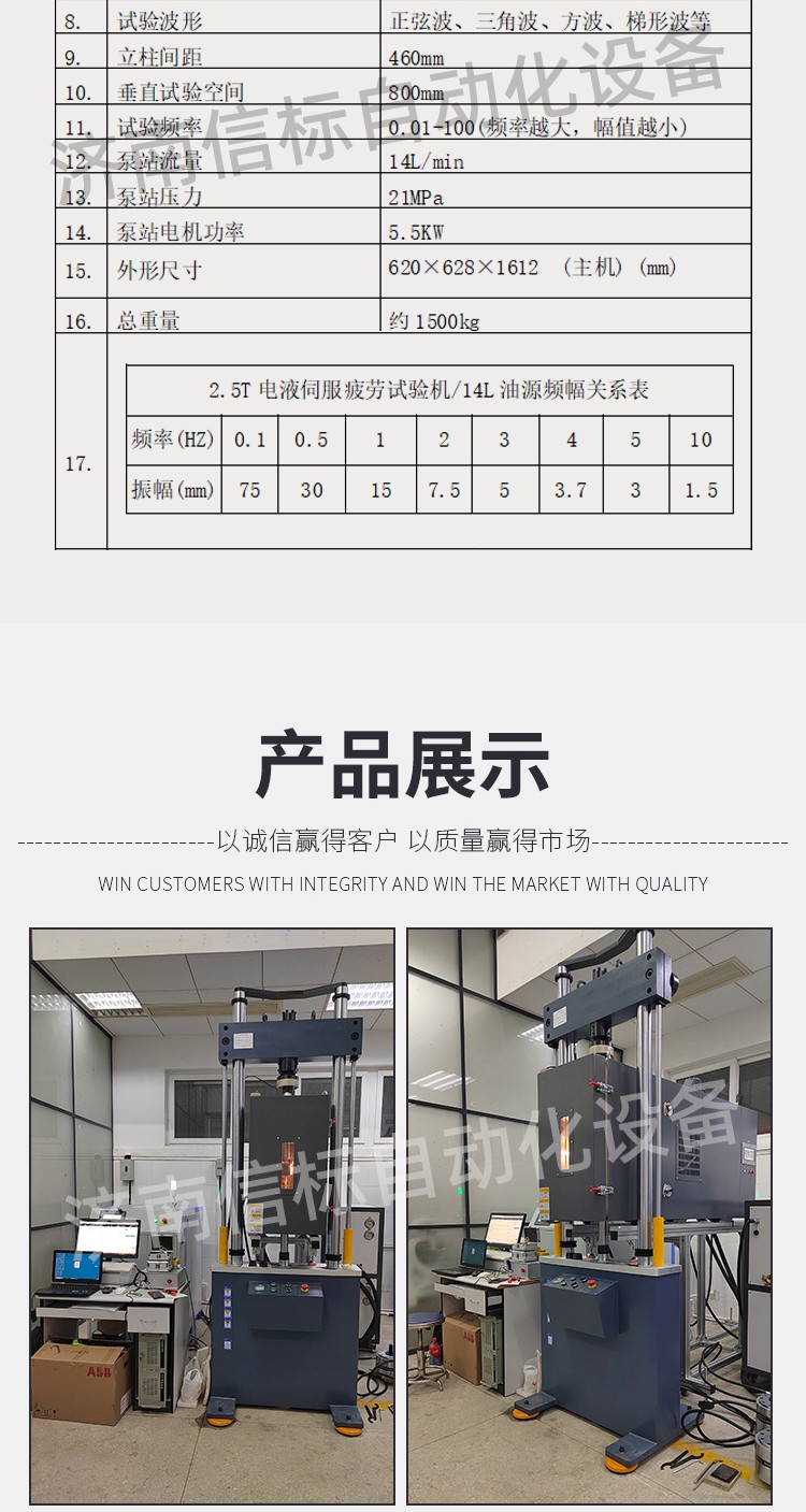 4.1 主機 主機為雙立柱加橫梁底座(立柱表面電鍍硬鉻)框架式結構,伺服直線作動器下置(或者上置)結構。主機作用是提供試樣連接接口,接受程序指令完成試樣的加載。其突出特點如下: 4.1.1主機為雙立柱框架式結構,橫梁采用液壓油缸控制升降、液壓缸控制夾緊式結構,使試驗調(diào)整、操控方便。特殊的液壓油路設計既可以保證試驗的穩(wěn)固可靠,可以在非試驗狀態(tài)時橫梁保持鎖止不動。 4.1.2橫梁具有很高的剛度和強度。同時造型具有立體感,美觀大方。 4.1.3橫梁升降、鎖緊油缸的密封元件采用進口產(chǎn)品,品質(zhì)可靠,結構獨特。 4.1.4立柱外表面采用電鍍硬鉻處理,進一步提高外形的美觀程度,同時提高防腐蝕能力。 4.1.5橫梁操控(升降、夾緊)驅(qū)動模塊采用高品質(zhì)液壓元件集成,控制臺設置符合人機工程學原理設計設計的操作臺,便于試驗者操作。 4.1.6伺服直線作動器與工作臺剛性連接,內(nèi)置非接觸式高頻響LVDT位移傳感器,外置國產(chǎn)航空品質(zhì)伺服閥,7Mpa下流量為58L/min。負荷傳感器采用Vishay世銓試驗機專用傳感器。 4.1.7設計由精度不大于5u國產(chǎn)溫州黎明精密濾油器以及具有消脈、蓄能功能的進回油路蓄能器組成的中繼濾油穩(wěn)壓模塊。 4.1.8單元化、標準化、模塊化設計的伺服直線作動器具有低阻尼、高響應、高壽命、大間隙設計的特點,設計理念與MTS公司等同。