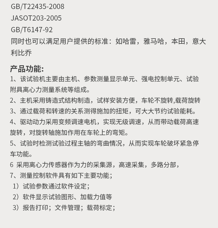 當(dāng)前位置:首頁(yè) > 解決方案 > 車輪旋轉(zhuǎn)彎曲疲勞試驗(yàn)機(jī) 自行車 電動(dòng)車摩托車輪轂離心旋轉(zhuǎn)測(cè)試機(jī)