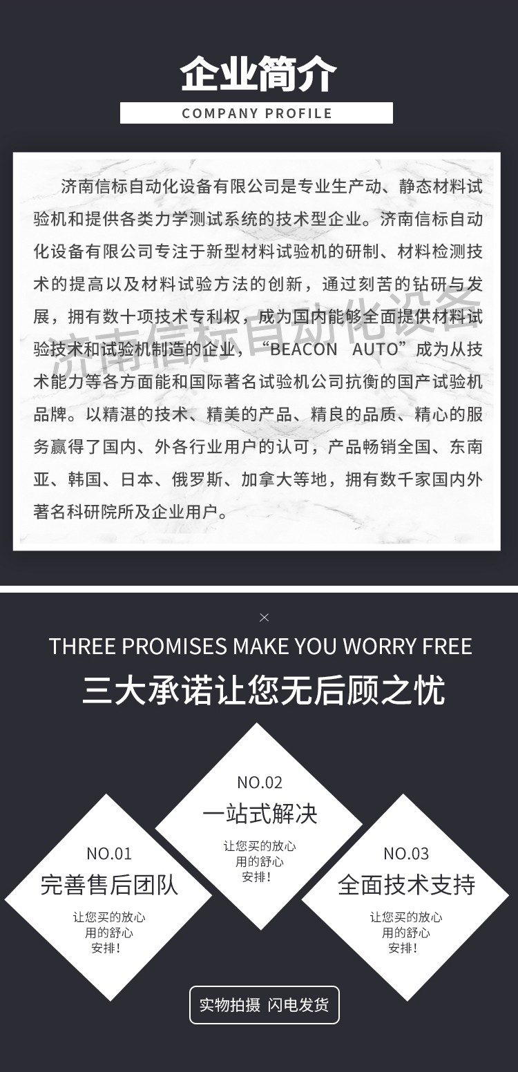 濟(jì)南信標(biāo)自動(dòng)化設(shè)備有限公司主要生產(chǎn):動(dòng)靜態(tài)萬(wàn)能疲勞試驗(yàn)機(jī),接骨板彎曲試驗(yàn)機(jī),縫合線拉伸疲勞試驗(yàn)機(jī),髖膝關(guān)節(jié)磨損試驗(yàn)機(jī),電子萬(wàn)能試驗(yàn)機(jī)、液壓萬(wàn)能試驗(yàn)機(jī)、巖石三軸、四軸,電液拉力試驗(yàn)機(jī),材料試驗(yàn)機(jī),高低溫蠕變,高低頻疲勞,拉伸、扭轉(zhuǎn)、杯突等二十多個(gè)系列兩千多個(gè)的品種。