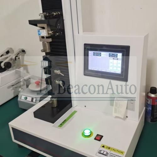 復(fù)合膜袋耐壓性能試驗(yàn)機(jī)產(chǎn)品特點(diǎn): 1、采用高精度、全數(shù)字調(diào)速系統(tǒng)及精密減速機(jī), 驅(qū)動(dòng)精密絲杠副進(jìn)行試驗(yàn),實(shí)現(xiàn)試驗(yàn)速度的大范圍調(diào)節(jié), 試驗(yàn)過(guò)程噪音低、運(yùn)行平穩(wěn)。 2、萬(wàn)向節(jié)采用十字插銷(xiāo)結(jié)構(gòu),而且具有擺角限制功能, 一方面便于試樣夾持,保證試驗(yàn)同心度, 另一方面很好的消除了不規(guī)則試樣對(duì)傳感器的影響。 3、觸摸鍵操作方式,液晶顯示器實(shí)時(shí)顯示。 顯示界面可顯示試驗(yàn)方法選擇界面、試驗(yàn)參數(shù)選擇界面、試驗(yàn)操作及結(jié)果顯示界面和曲線(xiàn)顯示界面,方便快捷。 4、可實(shí)現(xiàn)試樣裝夾時(shí)橫梁快慢升降調(diào)整,具有過(guò)流、過(guò)壓、過(guò)載等保護(hù)裝置。 5、選配微機(jī)接口,可外接微機(jī)實(shí)現(xiàn)試驗(yàn)過(guò)程的控制及數(shù)據(jù)的存儲(chǔ)、打印。 復(fù)合膜袋耐壓性能試驗(yàn)機(jī)技術(shù)參數(shù): 主要技術(shù)指標(biāo) | 型號(hào) | WDL系列液晶屏顯電子壓力試驗(yàn)機(jī) | 規(guī)格 | WDL系列 | 試驗(yàn)力 | 200N | 300N | 500N | 1000N | 2000N | 結(jié)構(gòu)形式 | 單臂式 | 壓縮空間 | 600mm | 負(fù)荷測(cè)量范圍 | 最大負(fù)荷的2%-100。% | 負(fù)荷測(cè)量精度 | 優(yōu)于示值的±1% | 橫梁位移速度 | 0-500mm/min無(wú)級(jí)調(diào)速 | 速度精度 | ±1% | 外形尺寸(mm) | 530*266*1450 | 夾具配置 | 壓縮夾具一套(根據(jù)用戶(hù)試樣要求) | 電源 | 單相交流220V±10%V | 重量(kg) | 60kg |