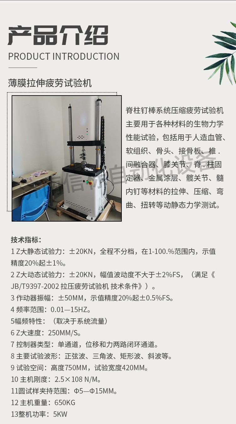 更多脊柱釘棒系統(tǒng)壓縮疲勞試驗機(jī)請聯(lián)系我們。專業(yè)生產(chǎn)液壓W能試驗機(jī),疲勞試驗機(jī),扭轉(zhuǎn)試驗機(jī),高溫蠕變試驗機(jī),彈簧試驗機(jī),彎曲試驗機(jī),沖擊試驗機(jī),彎曲強(qiáng)度試驗機(jī),抗拉強(qiáng)度試驗機(jī)等。
