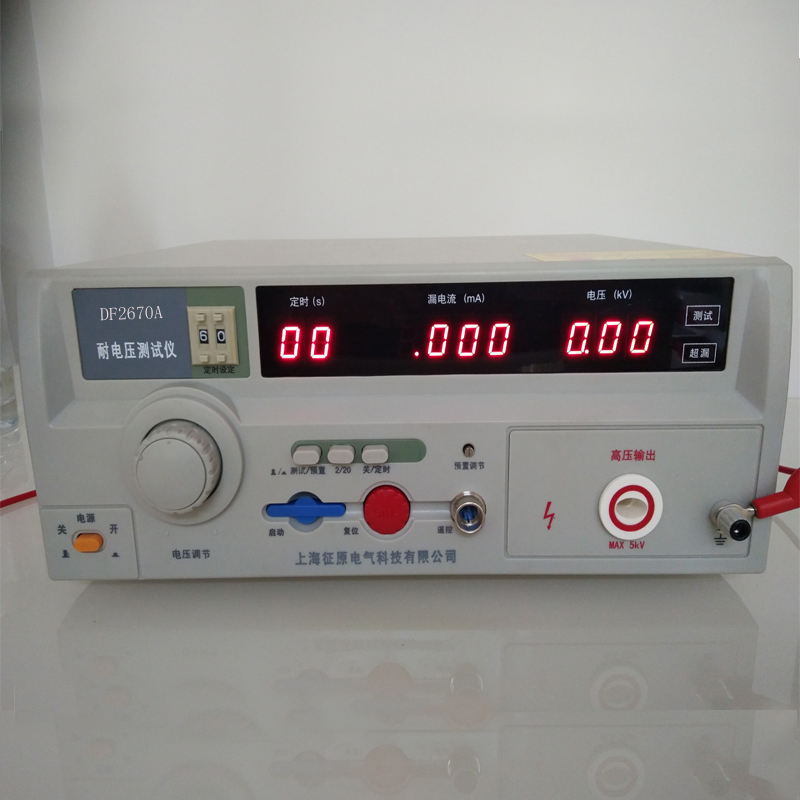 耐電壓測試儀是測量耐壓強(qiáng)度的儀器,它可以直觀、準(zhǔn)確、快速、可靠地測試各種被測對象的擊穿電壓、漏電流等電氣安全性能指標(biāo),并可以作為高壓源用來測試元器件和整機(jī)性能。上海征原公司耐電壓測試儀產(chǎn)品系列是按照IEC、CSA、UL、JIS等國際國內(nèi)的安全標(biāo)準(zhǔn)要求設(shè)計的,耐壓輸出范圍1kV~5kV,漏電流測試范圍0~20mA。適合各種家用電器、電源開關(guān)、電線電纜、變壓器、接線端子、高壓膠木電器、電機(jī)、醫(yī)療、化工、儀器儀表等,以及強(qiáng)電系統(tǒng)的安全耐壓和漏電流的測試、同時也是科研實驗室、技術(shù)監(jiān)督部門不可缺少的耐壓試驗設(shè)備。