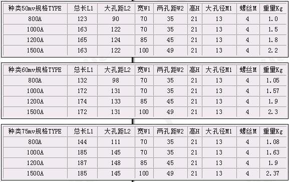 FL-2型800A~1500A錳銅分流器技術(shù)指標(biāo)