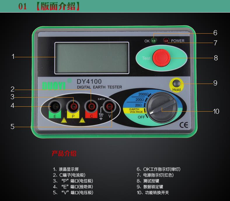 DY4100數(shù)字式接地電阻測試儀特點(diǎn):