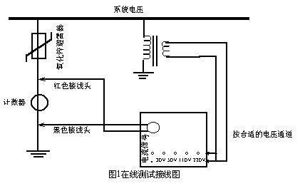 試驗(yàn)線路如圖 2所示。接線時(shí)請(qǐng)取一只 100Ω~200Ω電阻串在氧化鋅避雷器與地線之間,以保證試驗(yàn)回路聯(lián)通。